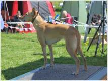 In diesem Jahr fand die Jahresausstellung der mediterranen Rassen auf der Windhundrennbahn in Greppin statt. Bei einer Meldezahl von 28 Hunden waren, mit Ausnahme des Podengo Portugues, alle Rassen der vom DWRV betreuten Rassen der Gruppe 5 vertreten. Der sympathische und humorvolle Zuchtrichter Jan Coppens aus den Niederlanden nahm die Bewertung der ausgestellten Hunde mit großer Sorgfalt und viel Einfühlungsvermögen vor und offenbarte großes Interesse und Sachkenntnis auch beim Kritikos Lagonikos. Er ließ es sich im Ehrenring nicht nehmen, das Publikum über die Herkunft und die Besonderheiten dieser Rasse zu infomieren.