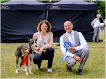 Auch in diesem Jahr nahmen wir an der German Winner Show des VDH in Gelsenkirchen teil, die wieder im Windhundstadion Emscherbruch stattfand. Die Rasse Kritikos Lagonikos wurde am Sonntag, dem 27. Juli 2025 von Klaus Strack gerichtet. Außer Antara in der Championklasse hatte er einen Rüden in der offenen Klasse zu bewerten: "Quality Hounds Aiantas" ist im November 2024 aus Kreta nach Deutschland importiert wurden, seine Züchter Maria Bouchlaki und Nikos Anetakis haben diesen wertvollen jungen Rüden wegen bereits vorhandener Nachzucht vertrauensvoll in die Hände von Sandra und Oliver Giesinger gegeben. Er konnte mit der Bewertung Vorzüglich 1 als bester Hund der Rasse den Titel German Winner 2025 erringen und bekam die Anwartschaft auf den Deutschen Schönheitschampion CAC.