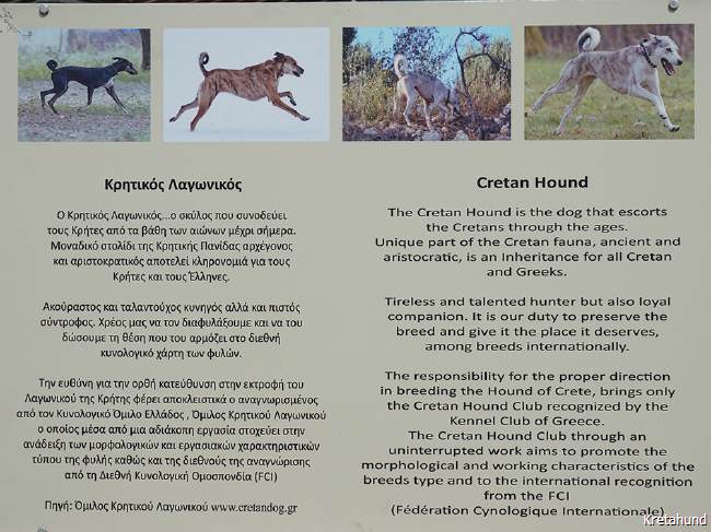gab es wieder die erste Zuchtschau auf Kreta mit guter Beteiligung. Jeder Hund wurde von einem ausgebildeten Richter der Rasse untersucht und 29 von ihnen nach erfolgter Anerkennung ins Zuchtbuch eingetragen. An der genetischen Untersuchung der Rasse (MARS-Studie), die vom Deutschen Windhundzucht- und Rennverband (DWZRV) durchgeführt wurde, nahmen ca. 70 Hunde von Mitgliedern des Clubs teil. Der Club organisiert auch Seminare zu rasserelevanten und allgemeinen Themen für Hundehalter und arbeitet an der Entwicklung eines Jagdeignungstests und der Korrektur des derzeit gültigen Standards. Außerdem werden der Tier- und Umweltschutz unterstützt, die Mitglieder wollen die artgerechtere Hundehaltung fördern und ein besseres Verständnis für Natur und nachhaltigem Umgang mit dieser. |