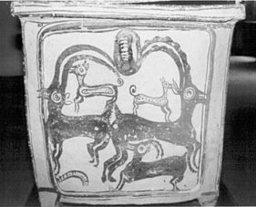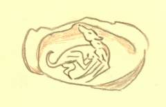 Handelt es sich um die Rassenklassifikation, so kann es gar keinem Zweifel unterliegen, dass wir es mit einem echten Windhund zu tun haben, der einen primitiven Charakter bewahrt hat. Ebenso sicher ist es, dass er mit dem früher von mir beschriebenen Ibizahund der Balearen-Inseln nahe verwandt, ja geradezu identisch ist. Schlechter gehaltene Balearenhunde lassen sich hinsichtlich der äußeren Erscheinung und dem Benehmen kaum vom Kreterhund unterscheiden. Beide haben ihr Stammland im Niltal. Es sind lebende Reste der alten Pharaonen-Windhunde, die sich kaum verändert haben. Während wir bisher nur die Relikten-Kolonie auf den Balearen kannten, kommt jetzt eine zweite in Kreta hinzu. Verfolgen wir die Geschichte der Rasse nach rückwärts, so erkennen wir, dass ihre Blütezeit in die zweite Hälfte des ersten vorchristlichen Jahrtausends fällt. Die Kreterhunde waren im Altertum berühmt und kamen vielfach nach Griechenland hinüber. Wir besitzen vorzügliche bildliche Darstellungen derselben. Sie finden sich auf altkretischen Münzen, insbesondere auf Münzen des antiken Kydonia. Der Sage zufolge soll sogar der Gründer dieser Stadt in seiner Kindheit von einer Kreterhündin gesäugt worden sein. Wie mir der berühmte Numismatiker Imhoof-Blumerbrieflich mitteilt, reichen diese altkretischen Münzen hinsichtlich ihres Alters nicht über das Jahr 500 v. Chr. hinauf. Eine reiche Auswahl derartiger Münzen mit schönen Windhundbildern, die alle Stehohren erkennen lassen, enthält das numismatische Werk des griechischen Archäologen J- N. Svoronos. Gute Hundebilder aus Altkreta gibt auch Otto Keller in seinem Werke über „Die antike Tierwelt“ nach Vorlagen, die ihm Imhoof-Blumer geliefert hat. Die einstigen Lieblinge der Artemis sind indessen schon vor dem Erscheinen der Hellenen in Kreta eingewandert. Ich fand im Museum in Kandia ein Windhundbild aus der ältesten minoischen Zeit, die weit hinter die mykenische Periode zurückgeht. Es stammt aus Mochlos (Mirabellabai) und wurde von dem Amerikaner R. B. Seager ausgegraben. Es ist ein stehohriger Windhund in liegender Stellungauf dem Deckel eines aus schwarzem Steatit gearbeiteten Gefäßes. Ich gebe nebenstehend das Bild in natürlicher Größe nach einerZeichnung, die ich in Kreta angefertigt habe (Anm.: Eine fast identische Pyxis wurde in Zakros gefunden). Wir müssen somit annehmen, dass schon zur Zeit der ältesten Dynastien in Ägypten große Windhunde nach Kreta gelangten und also mindestens seit 4000 Jahren dort vorhanden sind. Eine weitere Rasse, mit voriger nahe verwandt und offenbar aus der gleichen Region eingewandert, tritt uns in den stark verbreiteten Jagdhunden entgegen. Man verwendet sie hauptsächlich zur Jagd auf Hasen, Steinhühner und Wildtauben. Ihre Behaarung ist bald kurz und dicht anliegend wie bei den Laufhunden, bald länger nach Art eines Setter. Der Kopf, im Schnauzenteil vorgezogen, trägt mäßig umfangreiche Hängeohren. Die Körperfärbung ist sehr verschieden. Als häufigstes Vorkommen habe ich notiert: dunkel-braun mit rostfarbener Schnauze und rostfarbenen Pfoten, weiß mit rostbraunen Flecken, schwarz mit heller Schnauze, weißen Läufen und weißer Schwanzspitze, endlich weiß mit schwarzen Scheckenflecken. Manche Individuen sind in den Beinen ziemlich tief gestellt, bei anderen fiel mir auf, dass sie sehr hochbeinig sind und dann stark an die altägyptischen Jagdwindhunde erinnern. Ich glaube nicht, dass dies von einerEinkreuzung mit Kreterhunden herrührt, sondern dass wir Vererbung von altägyptischem Blut anzunehmen haben, also ebenfalls eine Reliktenform vor uns sehen. Solche hochbeinigen, hängeohrigen Jagdhunde sind wohl frühzeitig aus dem Niltal eingewandert, denn auf einer altkretischen Münze aus Südkreta, die in Phaistos gefunden wurde, ist dieser Hund recht gut abgebildet. Wahrscheinlich hat er sich von Kreta aus nach Sizilien verbreitet, mit dem schon zur Zeit des Minos Beziehungen bestanden haben. Otto Keller macht die ganz zutreffende Bemerkung, dass die sizilianischen Griechen eine große Vorliebe für Jagd-Windhunde besaßen. Antike Münzen aus Segesta und Syracus enthalten recht gute Darstellungen solcher Hunde, die mit den Kretern, wie der genannte Autor sagt, eine Verwandtschaft besitzen. Die heutigen russischen Windhunde oder Barsoi stammen wohl ebenfalls von Kreterhunden ab.”
