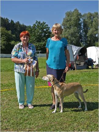 Antara lief in der Zwischenklasse und wurde von der Richterin Judit Szanka aus Ungarn ebenfalls mit Vorzüglich 1 bewertet, bekam das CAC und als bester Hund der Rasse (BOB) in Konkurrenz zu Fouria den Titel Sieger Jahresausstellung 2023.