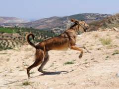 Daß der Hund im alten Kreta von großer Bedeutung war, wird nicht nur durch die Überlieferung der Mythen und durch die zahlreichen Abbildungen belegt, sondern auch durch einen aufsehenerregenden Fund von Hundeskeletten in Roussolakos bei Palaikastro auf Kreta. Hier befand sich in minoischer Zeit die größte Siedlung Kretas, Elia, und eines der wichtigsten Heiligtümer des Diktäischen Zeus, in dem man den Siegelabdruck des "großen Jägers" ausgrub. Es zeigt einen Jäger mit zwei Hunden bei der Jagd auf eine Wildziege. Mythologisch repräsentiert er die Constellation Orion - Canis major - Canis minor. Die Britsh School of Archaology fand auf dem Gelände zwei ausgetrocknete Zisternen, die u.a. 28 vollständig erhaltene Hundeskelette aus der Zeit von ca. 1450 v. Chr. enthielten. Wie uns der leitende Archäologe Alexander MacGillivray erklärte, läßt sich an der Art ihrer Bestattung erkennen, daß ihnen große Verehrung zuteil wurde. Für die Minoer waren sie heilige Tiere, denn sie halfen bei der Jagd auf die Tiere, die der Gottheit geopfert wurden, Hasen und Wildziegen.