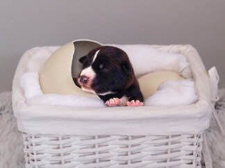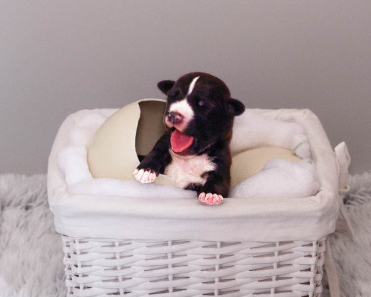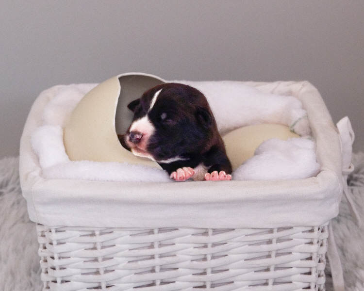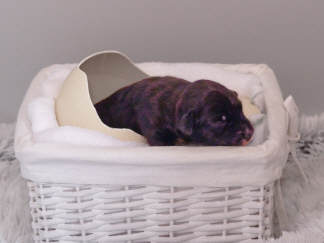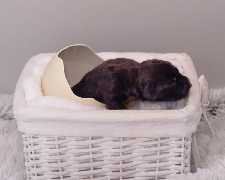Fouria´s Trächtigkeit verlief weiterhin absolut problemlos. Bald konnte man durch die Bauchdecke die Bewegungen der Welpen nicht nur fühlen, man sah sie sogar. Das Welpenzimmer wurde eingerichtet und Fouria liebte ihre Himmelbett-Wurfkiste. Natürlich haben wir auch schon die Außenbereiche, Terrasse und Garten, welpensicher auf die Rasselbande vorbereitet.