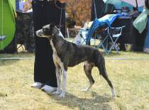 Auch in diesem Jahr nahmen wir an der German Winner Show des VDH in Gelsenkirchen teil, die wieder im Windhundstadion Emscherbruch stattfand. Die Rasse Kritikos Lagonikos wurde am Sonntag, dem 27. Juli 2025 von Klaus Strack gerichtet. Außer Antara in der Championklasse hatte er einen Rüden in der offenen Klasse zu bewerten: "Quality Hounds Aiantas" ist im November 2024 aus Kreta nach Deutschland importiert wurden, seine Züchter Maria Bouchlaki und Nikos Anetakis haben diesen wertvollen jungen Rüden wegen bereits vorhandener Nachzucht vertrauensvoll in die Hände von Sandra und Oliver Giesinger gegeben. Er konnte mit der Bewertung Vorzüglich 1 als bester Hund der Rasse den Titel German Winner 2025 erringen und bekam die Anwartschaft auf den Deutschen Schönheitschampion CAC. |
