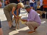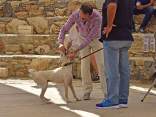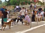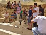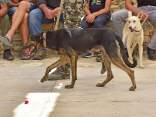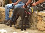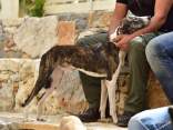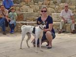 Die 2. Zuchtschau für die Rasse Kritikos Lagonikos wurde am 4. September 2016 vom Kritikos Lagonikos Club Kreta (OKLA) durchgeführt. Das Minoische Theater des Reitvereins Karteros bei Heraklion bot eine perfekte Kulisse für die Vorstellung dieser antiken Hunderasse. Mehrere hundert Besucher kamen von ganz Kreta, aber auch dem griechischen Festland und den anderen Inseln, um ihre Hunde für die Zuchtanerkennung und die Eintragung in das Zuchtbuch des griechischen Hundezuchtverbandes K.O.E. beurteilen zu lassen. Diese Aufgabe meisterte der international anerkannte Zuchtrichter Georgos Kostopoulos mit souveränen Bewertungen und freundlichen, verständlichen Erklärungen bei jedem vorgestellten Hund. Er erläuterte den außerordentlich interessierten Zuschauern auf den Rängen des Amphittheaters die Einzelheiten des Rassestandards des Kritikos Lagonikos. Etliche Fragen aus dem Publikum wurden beantwortet, vobei es vor allem um die Kriterien bei der Zuchtauswahl ging. Die vorgestellten Hunde waren hinsichtlich des Rassetyps und bezogen auf die Bedingungen des Rassestandards von deutlich besserer Qualität als im Vorjahr. Entsprechend strenger bewertete der Richter im Hinblick auf die Zuchtzulassung des jeweiligen Hundes. Schließlich bekamen 36 Hunde die Anerkennung und wurden zur Eintragung in das Zuchtbuch gemeldet. Auffällig viele junge Leute stellten ihre Hunde aus, auch Familien mit kleinen Kindern, die sich zwischendurch mit den Vierbeinern beschäftigten. Alle Hunde waren gesund, gut gepflegt und offenbar gut sozialisiert. Eine zweite Gruppe von Hundebesitzern stellten die traditionellen Jäger und Schäfer dar. Im letzten Jahr waren einige von ihnen zur Ausstellung erschienen, ohne ihre Hunde vorzustellen, da sie die Bedingungen, wie Impfung oder Kennzeichnung durch Microchip nicht erfüllten, oder weil ihre Hunde kupierte Ohren hatten. In diesem Jahr brachten sie ihre jungen Hunde zur Anerkennung - gesund, geimpft, mit Microchip und intakten Ohren. Auch wenn es offensichtlich war, daß es für sie vollkommen neu war, mit so vielen Menschen und anderen Hunden konfrontiert zu werden, war es doch sehr erfreulich, diese schönen Hunde zu sehen. Daß ihre Besitzer, deren tief verwurzelte Kultur und Mentalität wesentlich dazu beigetragen haben, den Kritikos Lagonikos als Rasse über Jahrtausende zu erhalten, jetzt den "modernen" Weg mitgehen, läßt auf eine gute Zukunft für die Rasse hoffen. Die Veranstaltung war für uns ein großartiges Erlebnis und wir bedanken uns bei Nikos Anetakis und den Mitgliedern und Sponsoren des OKLA, die diese Zuchtschau organisiert und finanziert haben. Die Teilnahme und auch die Eintragung in das Zuchtbuch waren wieder für alle Aussteller kostenfrei. Unsere Hündin Fouria bekam ihre Zuchtanerkennung, ebenso wie Nika (Ira von Kasotakis), deren Besitzerin Stefanie Thomaschewski mit ihrer Familie extra für die Ausstellung nach Kreta gekommen war.