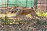 Der Hund bewegt sich leichtfüssig, schnell und anmutig mit gleichmässigen Schritten, ohne die Füße zu überkreuzen. Aus einem elastischen, federnden Trab im langsamen Tempo neigt er dazu, rasch in den Galopp zu wechseln. |