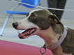 Der Kopf ist länglich, keilförmig und trocken (gutgemeisselt) mit mäßig betonten Augenbrauen und einer Furche zwischen den Augen. Der Stop ist nicht sehr ausgeprägt, der Oberkopf nur ganz leicht gewölbt. Die Nase ist ziemlich groß, ragt etwas über die Lippenlinie heraus und schwarz oder (bei kaffeebraunen Hunden) dunkel-kastanienbraun. Die mittelgroßen Augen sind mandelförmig und dunkel, die Lidränder ebenfalls gut pigmentiert. Der Kiefer ist kräftig mit vollständigem Scherengebiß. Die mittelgroßen, dreieckigen Ohren sind hoch und ein wenig seitlich angesetzt, nach vorne gerichtet, breit an der Basis und an den Enden ganz leicht gerundet. Sie sind halbaufgerichtet oder aufrecht stehend, dabei aber immer sehr beweglich, so daß der Hund sie je nach Situation und Stimmung zu den Seiten oder nach hinten dreht, sie zu Rosenohren faltet oder flach am Nacken anlegtaufgerichtet werden, sind dabei aber sehr beweglich. |