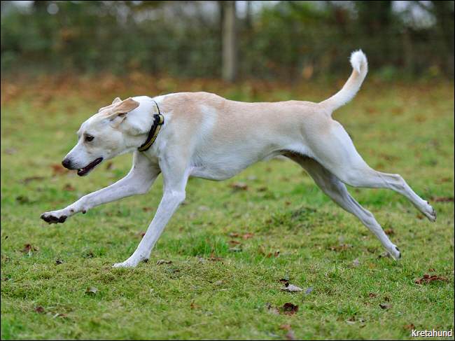 Inzwischen gibt es ausreichend Erfahrungen mit dieser Rasse auch außerhalb ihrer Heimat und der dortigen Lebensbedingungen. Der Kritikós Lagonikós stellt hinsichtlich seiner Haltung sicherlich besondere Anforderungen an seine Menschen. Er hat er ein ausgesprochen starkes Bewegungsbedürfnis. Ein kurzer Spaziergang wird diesem Hund nicht genügen, er sollte möglichst täglich Freilauf auf ausreichend großer Fläche haben, um seinen Galopp voll entfalten zu können. Nicht zu unterschätzen sind sein Freiheitsdrang und sein Jagdverhalten. Wenn es ihm im Garten zu langweilig wird, geht er auch mal spazieren. Dabei wird auch ein zwei Meter hoher Zaun ohne Schwierigkeiten übersprungen, jedes noch so kleine Loch dient als Durchschlupf (wo der Kopf durchpaßt, paßt auch der Rest des Hundes). Wenn sich etwas Interessantes außerhalb des Grundstückes befindet, kann er sich in Sekundenschnelle unter dem Zaun durchgraben. Es ist jedoch keineswegs so, daß der Kretische Hund unkontrollierbar ist, sobald man ihn von der Leine lässt. Eine liebevolle, einfühlsame und konsequente Erziehung macht ihn zu einem verlässlichen, gehorsamen Begleiter. Wenn diese Hunde ausgelastet sind, sind sie im Haus sehr ruhig. Sie melden Besucher, ohne viel zu bellen. Sie werden auch nicht nervös, wenn es mal ein paar Tage keine Beschäftigung gibt und sind Energiesparer, die sehr schnell abschalten können, wenn nichts zu tun ist. |