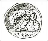 Auch in der neueren Mythologie Kretas spielt der Hund eine tragende Rolle. Die heutige Stadt Chania hieß früher Kydonia, benannt nach dem König Kydon (oder Kydonas), von dem sie der Legende nach gegründet wurde. Kydon, Kyon oder Kynos waren die altgriechischen Wörter für Hund. Die Mutter von Kydon war eine Göttin, die das Kind gleich nach der Geburt einem Hirten überließ (oder in den Bergen aussetzte). Dieser zog das Kind groß, indem er es von einer Kretischen Jagdhündin säugen ließ. Auf einigen alten Münzen aus Kydonia ist diese Szene abgebildet. |
