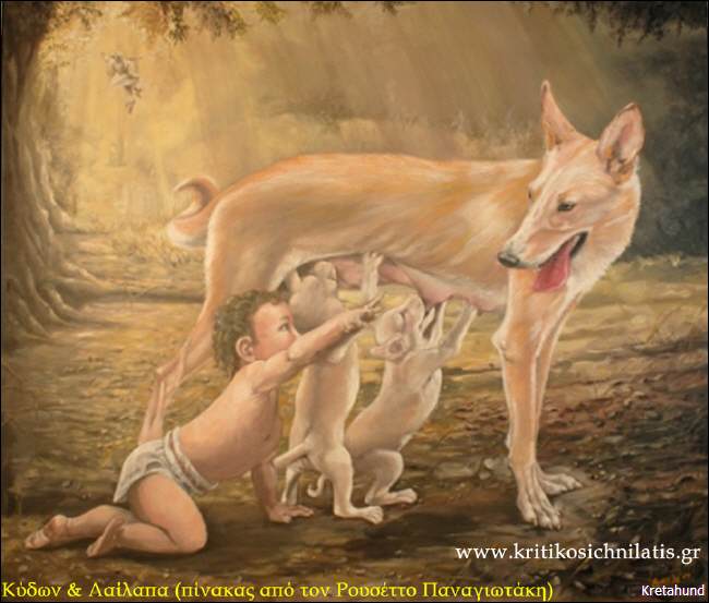 Kydon und Lailapa Gemälde des kretischen Künstlers Rousettos Panagiotakis |