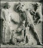 Als ihn eines Tages die Königstochter Prokris aus Athen besuchte, die gerade von ihrem Mann Kephalos verlassen worden war, verführte er sie, indem er ihr als Geschenk den Kretischen Hund und den Wunderspeer anbot. Als begeisterte Jägerin konnte sie nicht widerstehen, und sie kannte einen Trank, mit dem sie Minos heilen konnte. Als Knabe verkleidet ging Prokris zu Kephalos zurück, den Hund und den Speer nahm sie mit. Kephalos erkannte sie nicht, war aber von dem Hund und dem Speer so begeistert, daß er beide für viel Silber kaufen wollte. Sie gab ihm die Geschenke für einen Liebesdienst, bei dem sie dann ihre Identität preisgab. Wieder versöhnt, gingen beide gemeinsam auf Jagd. Der Hund hatte inzwischen einen Namen: Lailaps, der Sturmwind. Artemis, die über die Verschacherung dieser kostbaren Gaben zornig war, lenkte die Geschicke derart, daß Kephalos seine Frau aus Versehen mit dem Speer tötete. Er wurde zur ewigen Verbannung verurteilt und ging nach Theben. |