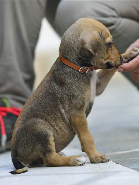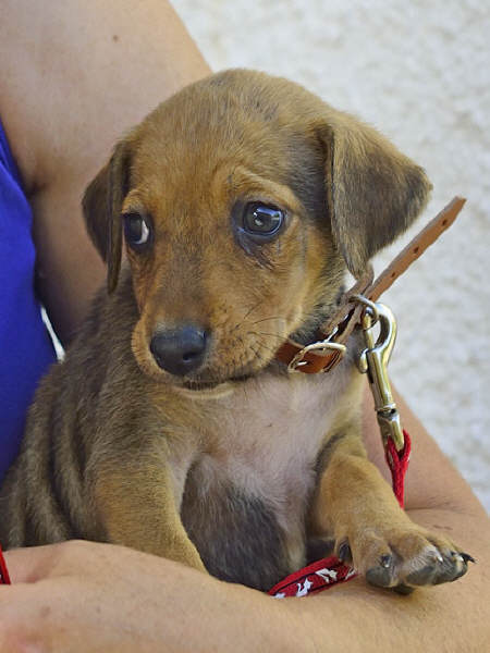 Am 26.9.2014 trat "Fouria", die Ungestüme, in unser Leben. An diesem Tag holten wir sie von ihrem Züchter Giannis Apidianakis im Osten Kretas und nahmen sie mit zu Freunden, die in der Nähe von Athen leben. Dort sollte sie als Jagdhund ausgebildet werden. Aber dann kam es doch anders... Am 16.11.2014 holten wir den kleinen Wirbelwind zu uns! Ihre Eltern heißen Petousa und Kapsalis.