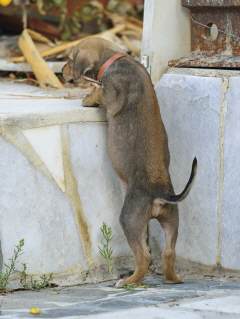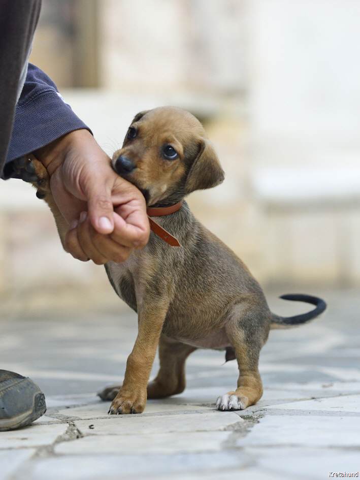 Am 26.9.2014 trat "Fouria", die Ungestüme, in unser Leben. An diesem Tag holten wir sie von ihrem Züchter Giannis Apidianakis im Osten Kretas und nahmen sie mit zu Freunden, die in der Nähe von Athen leben. Dort sollte sie als Jagdhund ausgebildet werden. Aber dann kam es doch anders... Am 16.11.2014 holten wir den kleinen Wirbelwind zu uns!